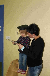 Aujourd’hui, nous avons dit au revoir à Jules, Margaux, Marius, Baptiste et Elsa, qui vont faire leur 1ère rentrée scolaire après les vacances de noël!Ils ont décoré un pot, dans lequel ils ont planté une jacinthe pour le ramener chez eux et voir cette fleur pousser. Pour l’occasion, tous leurs copains s’étaient réunis autour d’un goûter de fête! Ils ont pu manger les chouquettes et les bonbons ramenés par Marius et Margaux. Et pour finir, leur diplôme leur a été officiellement remis avec le chapeau comme dans les remises officielles des grandes écoles!