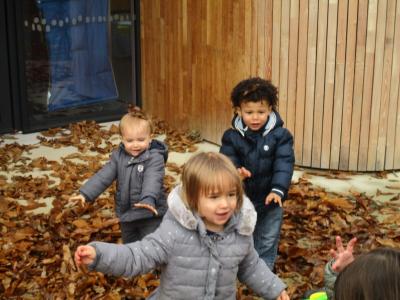 De l’automne, les enfants retiennent surtout que les feuilles tombent des arbres. Quelle joie de courir dans toutes ces feuilles et de les lancer! Une belle partie de rigolade!