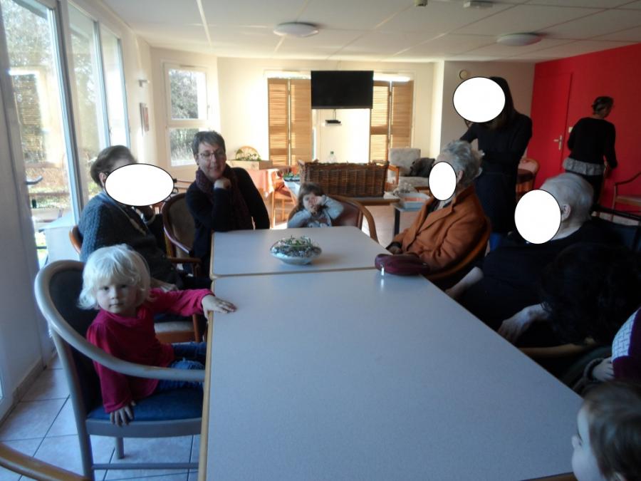 Comme chaque mois, Ava, Anaïs, Heinoa, Louane, Corinne et Sylvie sont allés rendre visite aux papys, mamies.