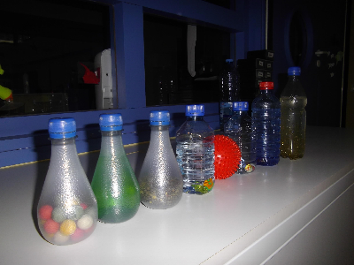 Suite au projet d’atelier sensoriel chez les grands, un espace spécialement dédié à l’éveil sensoriel est en cours de réalisation dans l’espace Nénuphar.Dans une grande boîte, se trouvent différents objets: balle picot, poche tactile, tissus… Les enfants ont déjà découvert de petites bouteilles rigolotes (solidement collées) contenant diverses choses: petites boules de couleur, eau pailletée, lentilles…Ils les explorent de long en large. Nous notons plusieurs réactions: grands yeux, étonnement, sourires…Aujourd’hui, nous avons sorti de la boîte des morceaux de tissu afin que les enfants touchent les différentes textures et en profitent pour jouer à cacher/coucou.Pleins de découvertes en perspective ! ! !