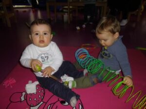 Des anneaux , des bâtons qui font du bruit ou à paillettes, des petites bêtes en caoutchouc (étrange au toucher).