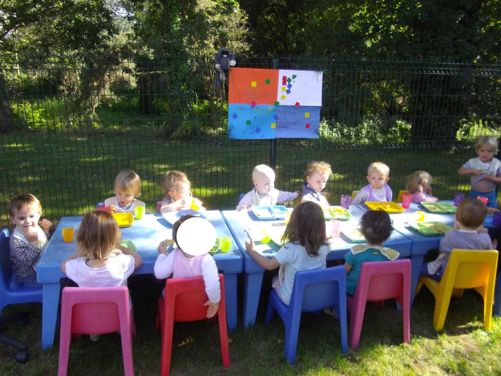 Nous avons pu profiter d’un peu de soleil pour prendre les repas et les goûters dehors chez les grands. Pour combien de temps?