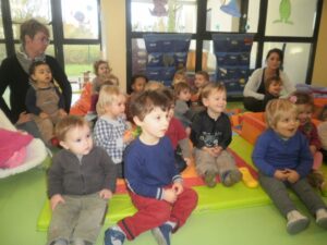 …vous en entendez parler, mais qu’est-ce qu’on y fait?On se retrouve ensemble, le matin vers 9h30, pour un moment convivial avec les enfants. On chante, on utilise les marionnettes, on se raconte des petites histoires et on fini parfois par danser. Le lundi et le mercredi, les enfants des deux espaces sont réunis pendant ce temps d’accueil, c’est un vrai moment de joie et de fête!