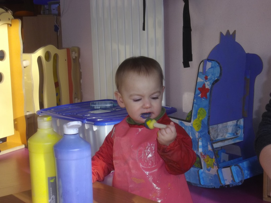 Avec les enfants de l’espace nénuphar, on privilégie les ateliers de manipulation et de sensation. La peinture et le transvasement sont toujours très appréciés…la preuve en image!