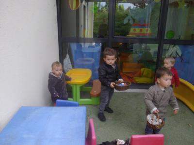 Alors mardi 22, les enfants  se sont empressés d’aller dans le jardin à la chasse aux oeufs !