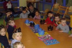 Mardi matin, quelques enfants ont préparé une galette des rois à la compote de pomme. Ils ont étalé la compote sur la pâte, glissé une fève, puis refermé la galette. Une fois cuite, ils l’ont mangé au goûter ! C’est Noa qui a trouvé la fève ! Mais chaque enfant avait décoré une couronne ! Ils étaient tous très beaux !