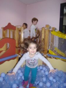La structure préférée au P’tit Club, c’est le lieu où l’on peut se défouler à l’intérieur!Que de joie de rire à grimper, sauter, glisser, se cacher dans les balles ou sous la structure …