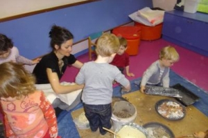 Après avoir observé, les enfants prennent plaisir à découvrir la terre dans tous ses états. Place aux mélanges de différentes terres…solides, friables, liquides.