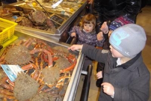 Le mercredi 29 janvier, Maxence, Manon , Gabin , Ninon, Sandrine et Sylvie ont pris le bus pour une ballade au marché de Vannes. Ils ont d’abord été très attirés par les fruits et les légumes, ils avaient envie de tout goûter. Une maraîchère leur a permis de manger de la clémentine…miam, miam…Ensuite, ils ont fait une pause : dégustation de pudding, d’un croissant, et d’un pain au chocolat!Enfin, la visite de la poissonnerie a été un moment inoubliable! Ils ont pu toucher une araignée de mer. D’ailleurs, ils ont décidé d’en acheter une pour les enfants de la crèche. Ils l’ont dégustés le lendemain au repas, trop bon!!