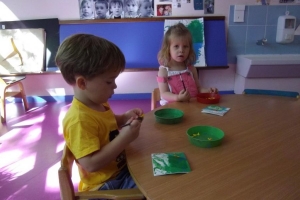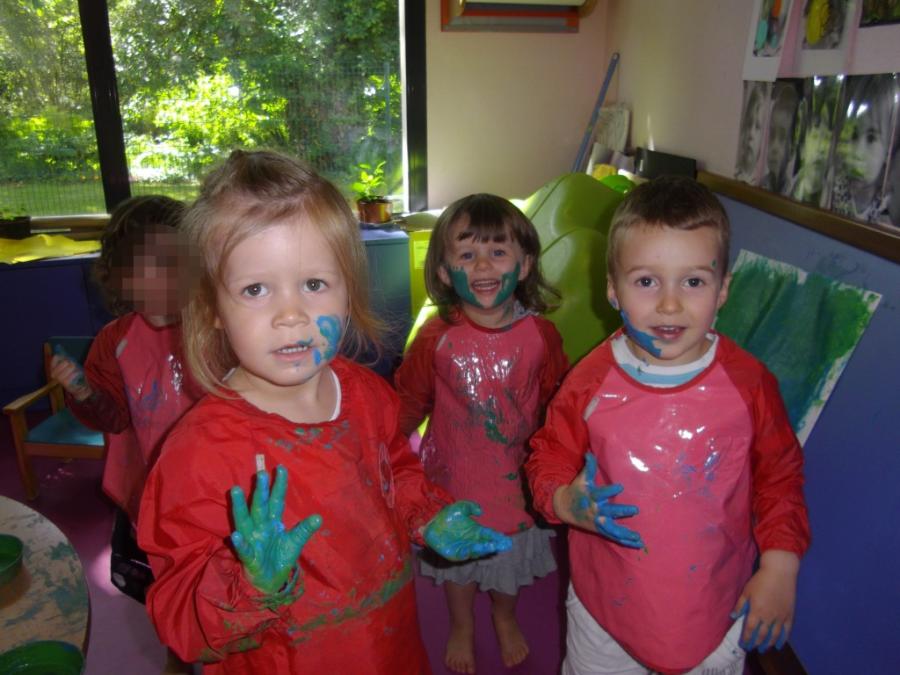 Les enfants ont fait les cartes d’invitation aux parents pour la fête des grands. Un plaisir de patouiller la peinture!