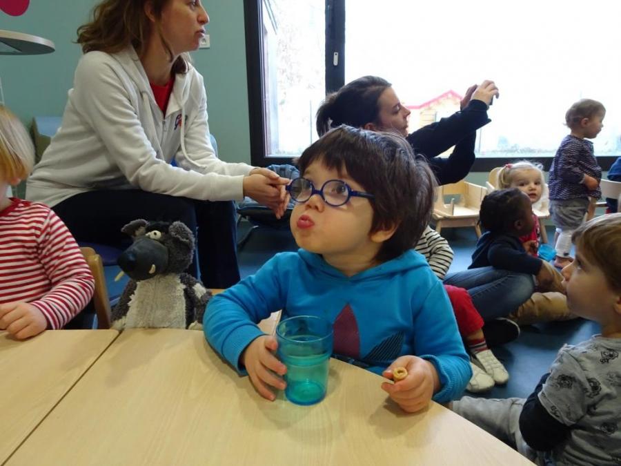 La compagnie « l’œuf et la poule » vient nous rendre visite 1 fois par mois pour un moment convivial. Les enfants apprécient toujours ce moment où ils peuvent découvrir, toucher, écouter les différents instruments! De loin ou de près, à chacun sa façon de participer!