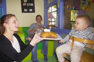 Gâteau fait le matin avec les copains et dégustation au goûter comme il se doit avec bougies et chansons!