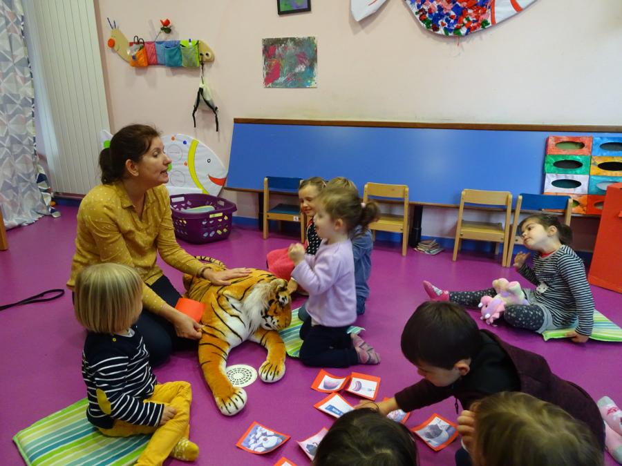 December, it’s christmas time so our book is « I love you father christmas » by Giles Andreae. We made beards to dress up like father Christmas and antlers to be reinder as well! We talked about christmas food, mince pies, christmas pudding and oranges. We sang once there was a snowman and single bells. Parents were invited for our last workshop, 19 december, to join us for fun and games.