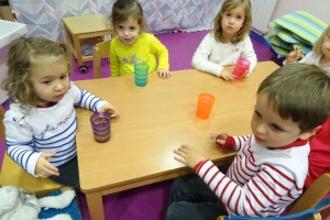 We decorated teapots and sang « I am a little tea pot », we played teapot tic, tac, toe and we even poured orange juice out of teapot!