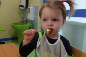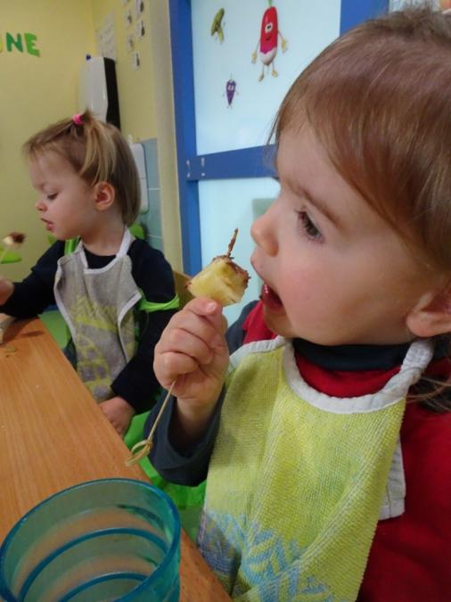 Un menu coloré avec des pâtes de couleurs et des brochettes de fruits déguisés (de chocolat)!