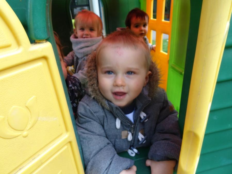 Jeux libres dans l’espace, instruments de musique, sortie dans le jardin, de beaux sourire sont le quotidien des bébés!!