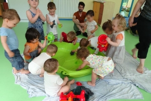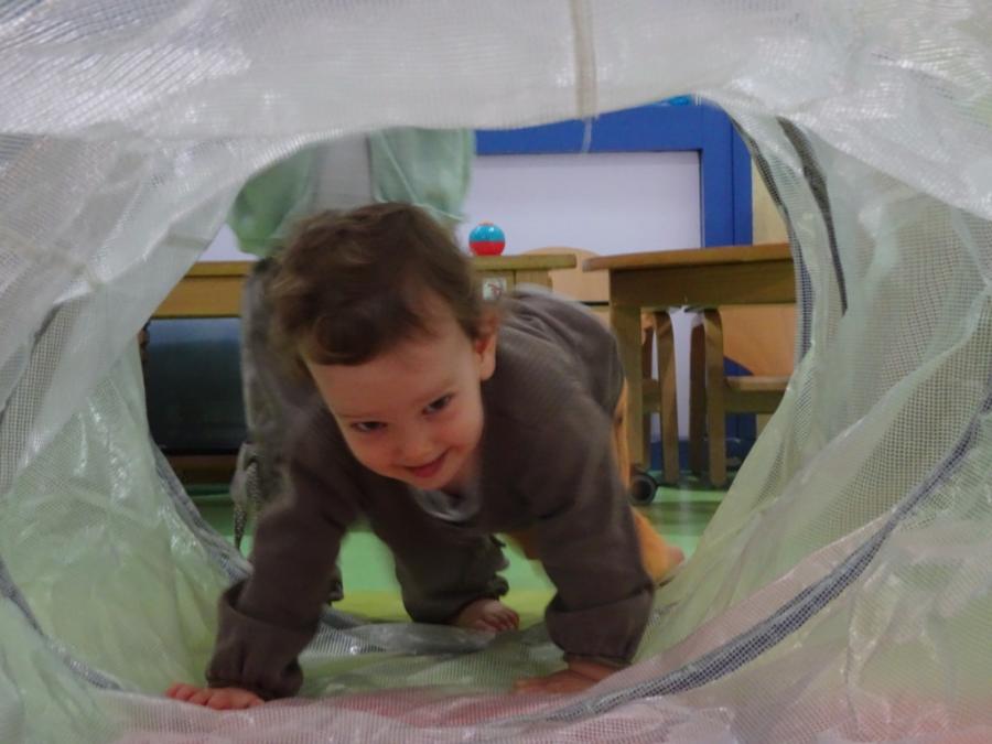 Activité motrice qui se découvre progressivement pour certains. On commence par observer les copains puis on fait avec l’adulte et on prends confiance. Hop c’est parti pour les allers-retours à l’intérieur!