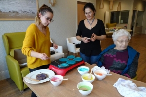 Chaque duo (résidents et enfants) ont fait des feux d’artifice sur toile foncée.